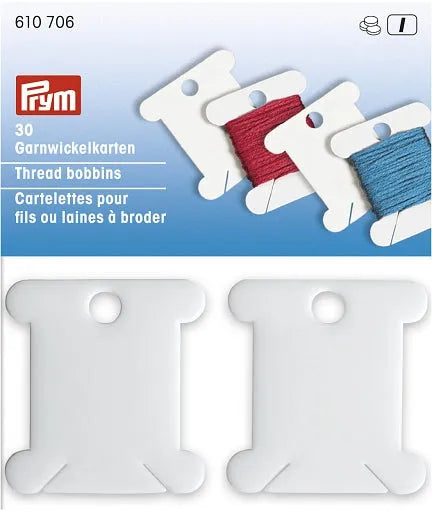Dieses Set enthält 30 robuste Kunststoffkarten, ideal zum Aufwickeln, Sortieren und Aufbewahren von Stickgarn, Nähfaden oder dünnem Bastelgarn.