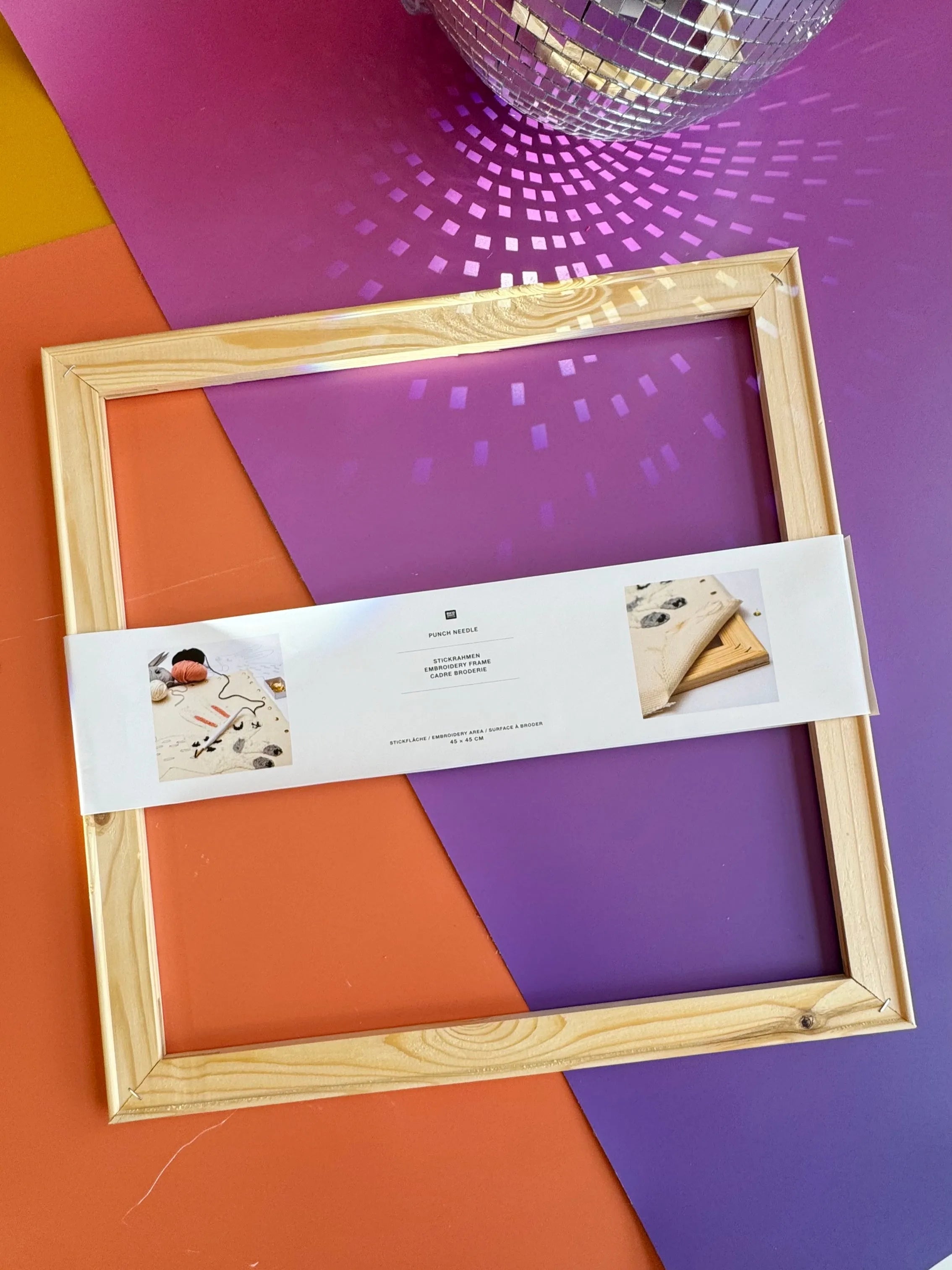 Dieser 45×45 cm Rahmen passt ideal zu unseren Punch Needle Kissen-Sets.