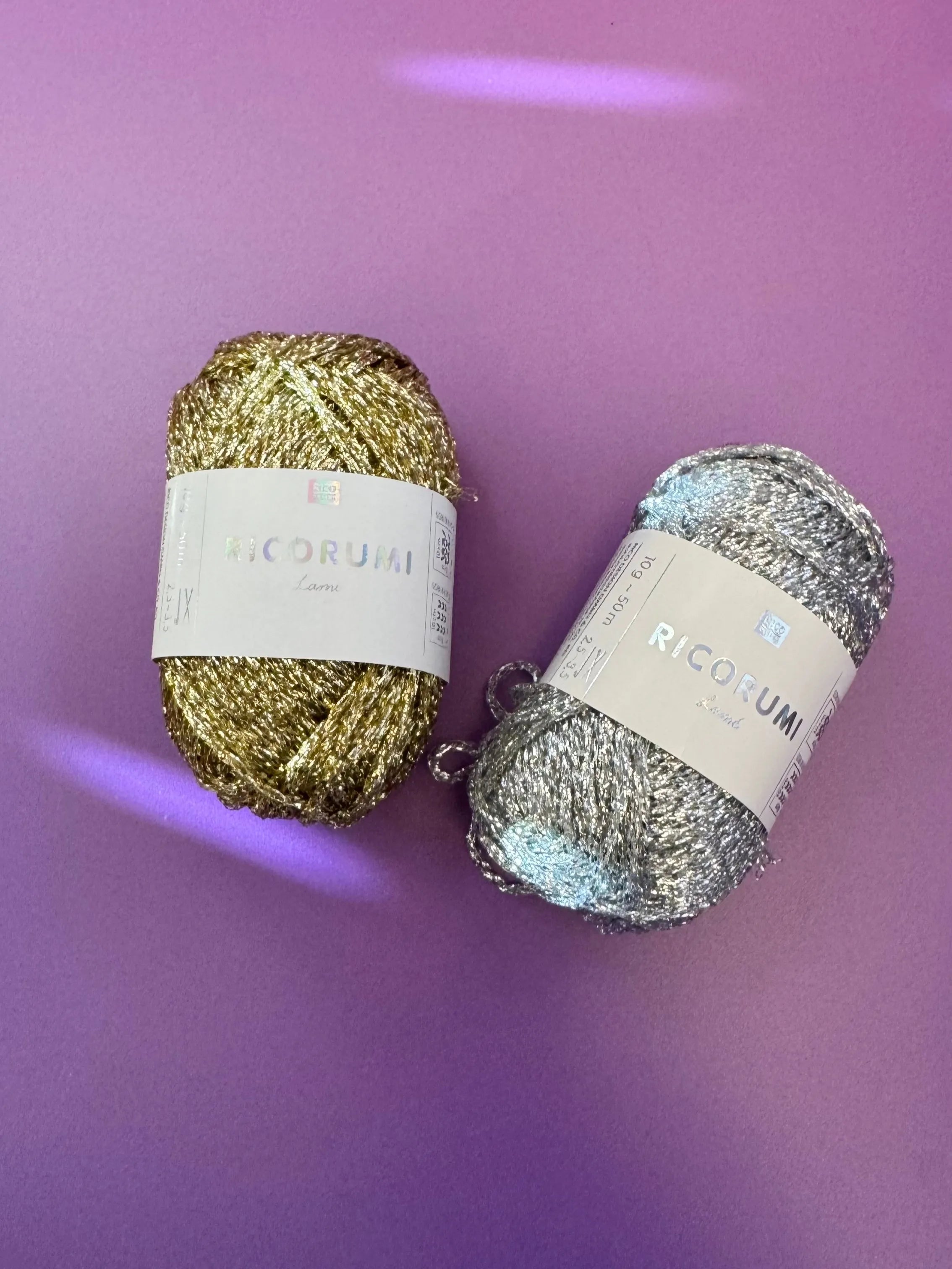 Lass dich von der Vielseitigkeit und dem schimmernden Effekt des Ricorumi Lamé Garns begeistern und bringe Glanz in deine Projekte! Perfekt für Punch Needle, Amigurumi und alle kreativen Häkelideen.