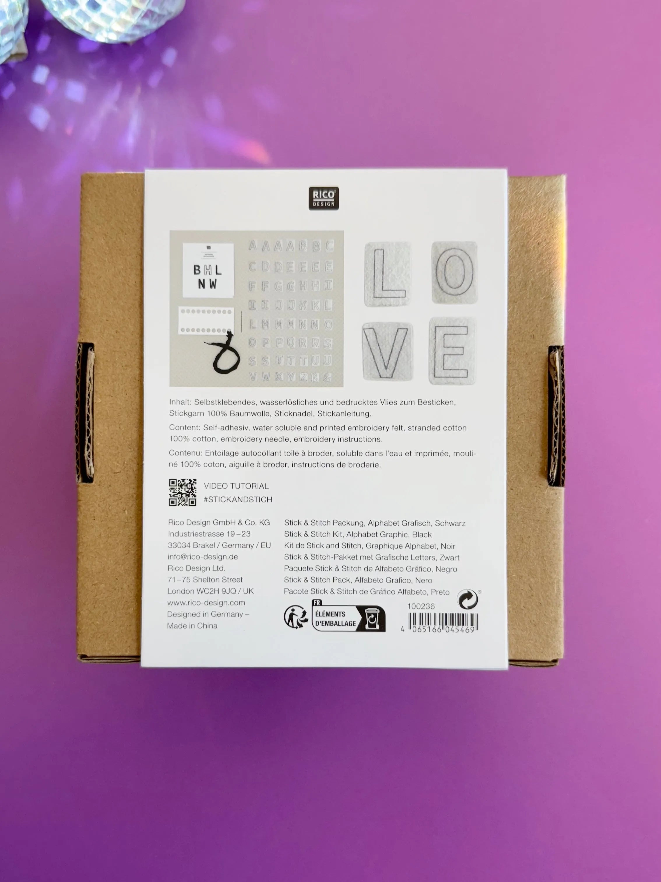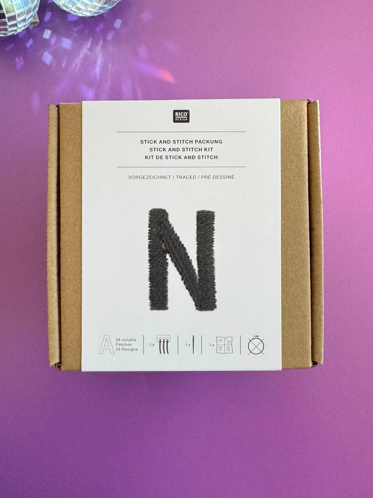 Mit dieser besonderen Stickpackung kannst du im Handumdrehen Namen oder Initialien auf Kleidung, Tischdecken oder Stoffservietten sticken. Klebe einfach die selbstklebende Vorlage auf einen waschbaren Textiluntergrund, spanne ihn in einen Stickrahmen und folge der vorgezeichneten Anleitung zum Sticken des Motivs. Nach dem Sticken lässt sich die Vorlage mit warmem Wasser ganz einfach vom bestickten Stoff abwaschen – und schon ist deine Kreation fertig!