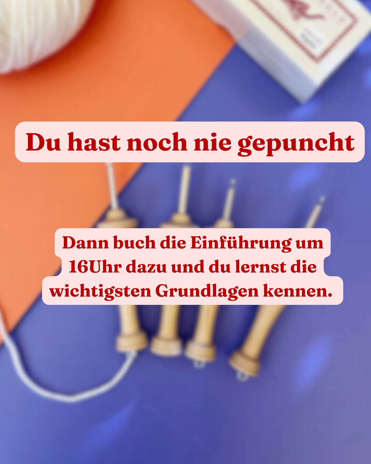 Wenn du auch Punchen willst, es aber noch nie gemacht hast, kannst du einfach die Einführung um 16 Uhr buchen. Wir geben dir eine kurze Einführung und kannst an den Testrahmen erste Punch Needle Versuche machen. Anschliessend kannst du im Laden etwas passendes zum punchen kaufen, damit du mit uns allen punchen kannst.