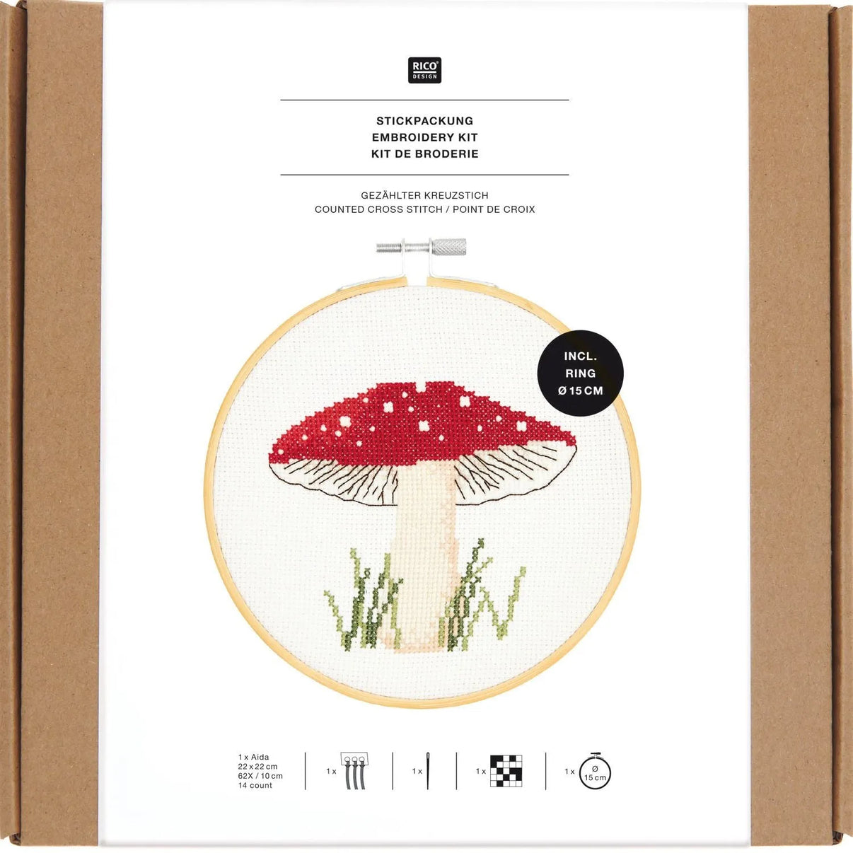 Embroidery Set - Mushroom - Cross Stitch - 15cm - Rico Design