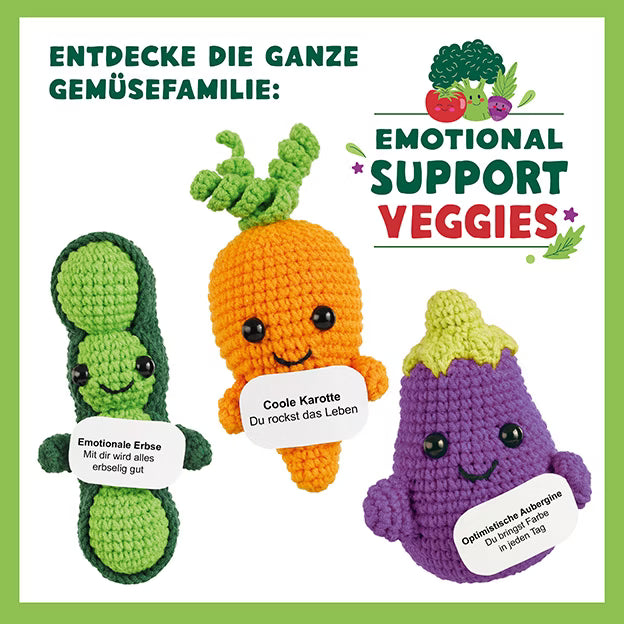 Emotional Support Veggie Crochet Kit "Emotional Pea" – Amigurumi Pea with Motivational Cards