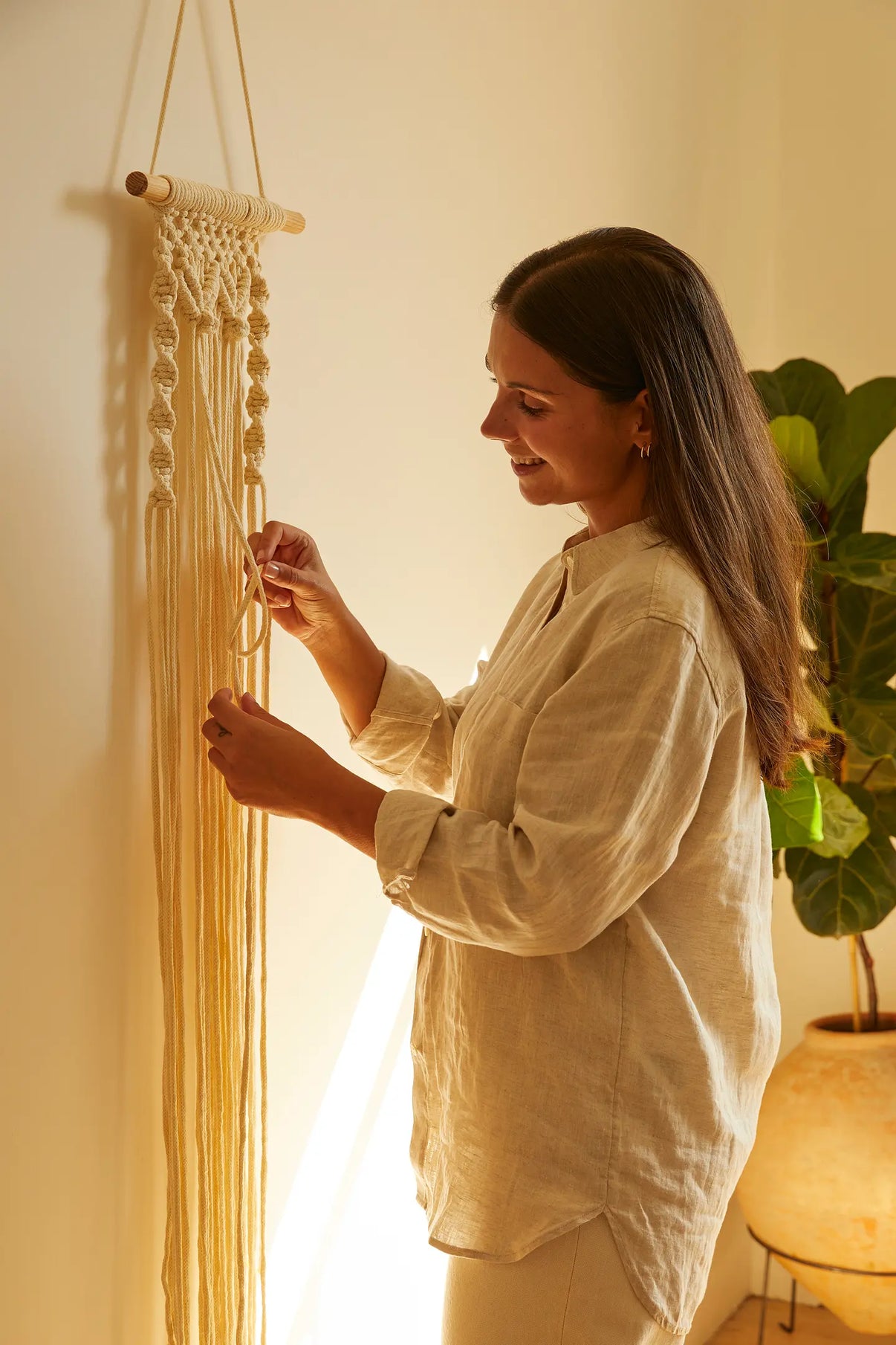 Calm your mind with simple macramé knots and create a soothing wall hanging in gentle, neutral tones. This meditative knotting project offers a beautiful way to ground yourself in the present moment.