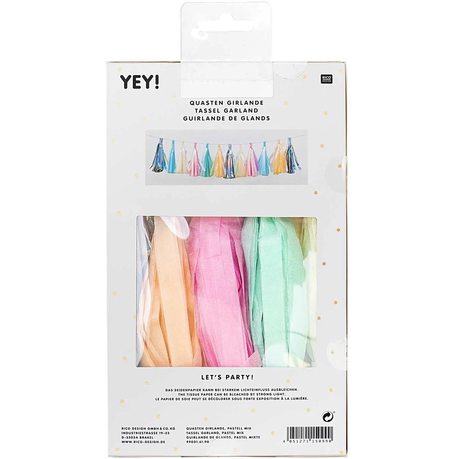 Get ready to celebrate with the YEY! Tassel Garland, the ultimate decoration for your next party! Each garland features twelve tassels, each measuring 18.5 cm, and stretches up to 2 meters in length. You can adjust the length by sliding the tassels for a custom fit.